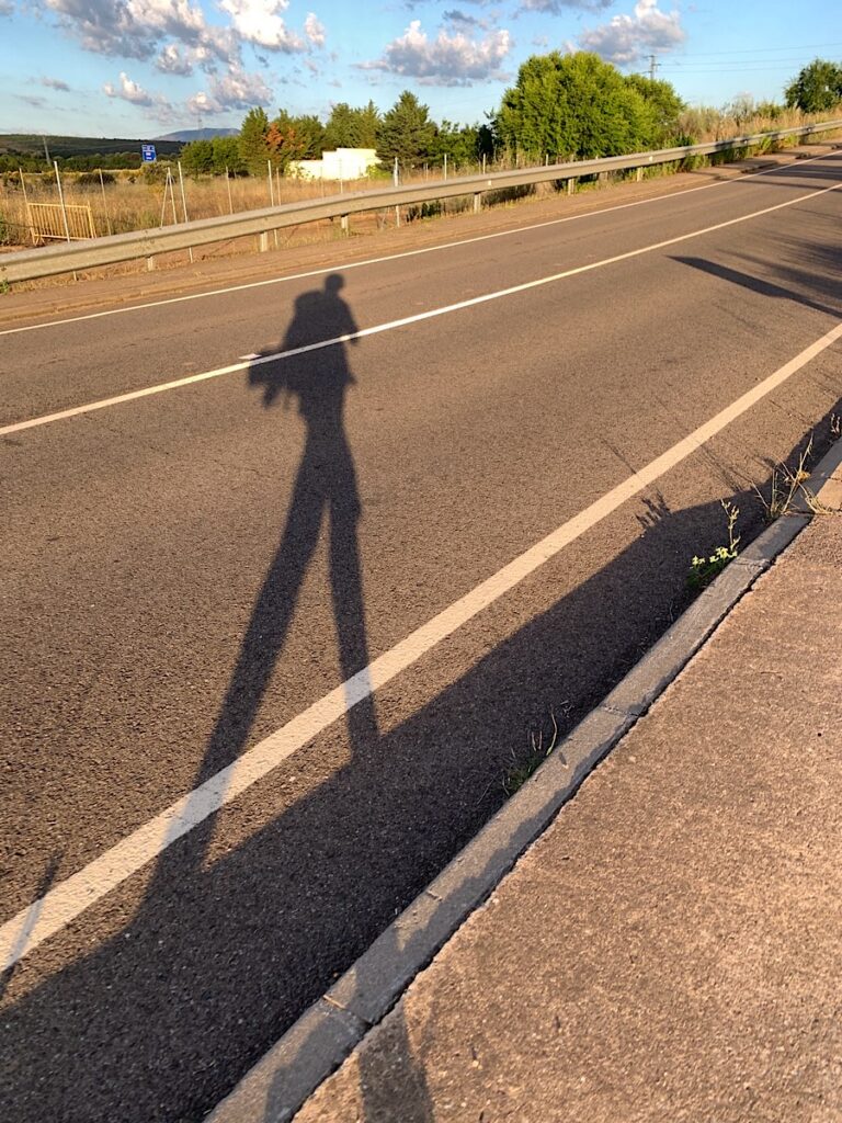 Ich freue mich auf ein leckeres Abendessen mit Andreas. Auch wenn er schon wieder mehrfach das Wort scheiße gesagt hat und seine ganze Körpersprache negativ auf mich wirkt. Würde man ihn in einen Stummfilm platzieren und nur seine Gestik und seinen Gesichtsausdruck sehen während er spricht, könnte man meinen, daß er sich über etwas wahnsinnig aufregt. Jedes Mal wenn wir uns begegnen sagt er sowas wie »das ging ja vielleicht steil bergauf«, oder »ist das wieder mal heiß«, oder »ist das anstrengend heute«. Dabei schüttelt er dann meistens empört mit dem Kopf. Wie schön es hier ist scheint er zu übersehen. Wenn ich aber bedenke, daß er am Tag vor unserer ersten Begegnung vor ein paar Wochen schon im Taxi zum Flughafen saß um nach Hause zu fliegen, hält er sich jetzt trotz allem ganz gut. Schließlich hat er die Meseta überstanden, und das heißt schon was.