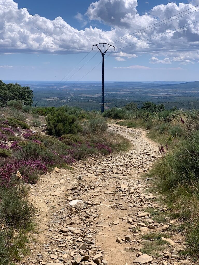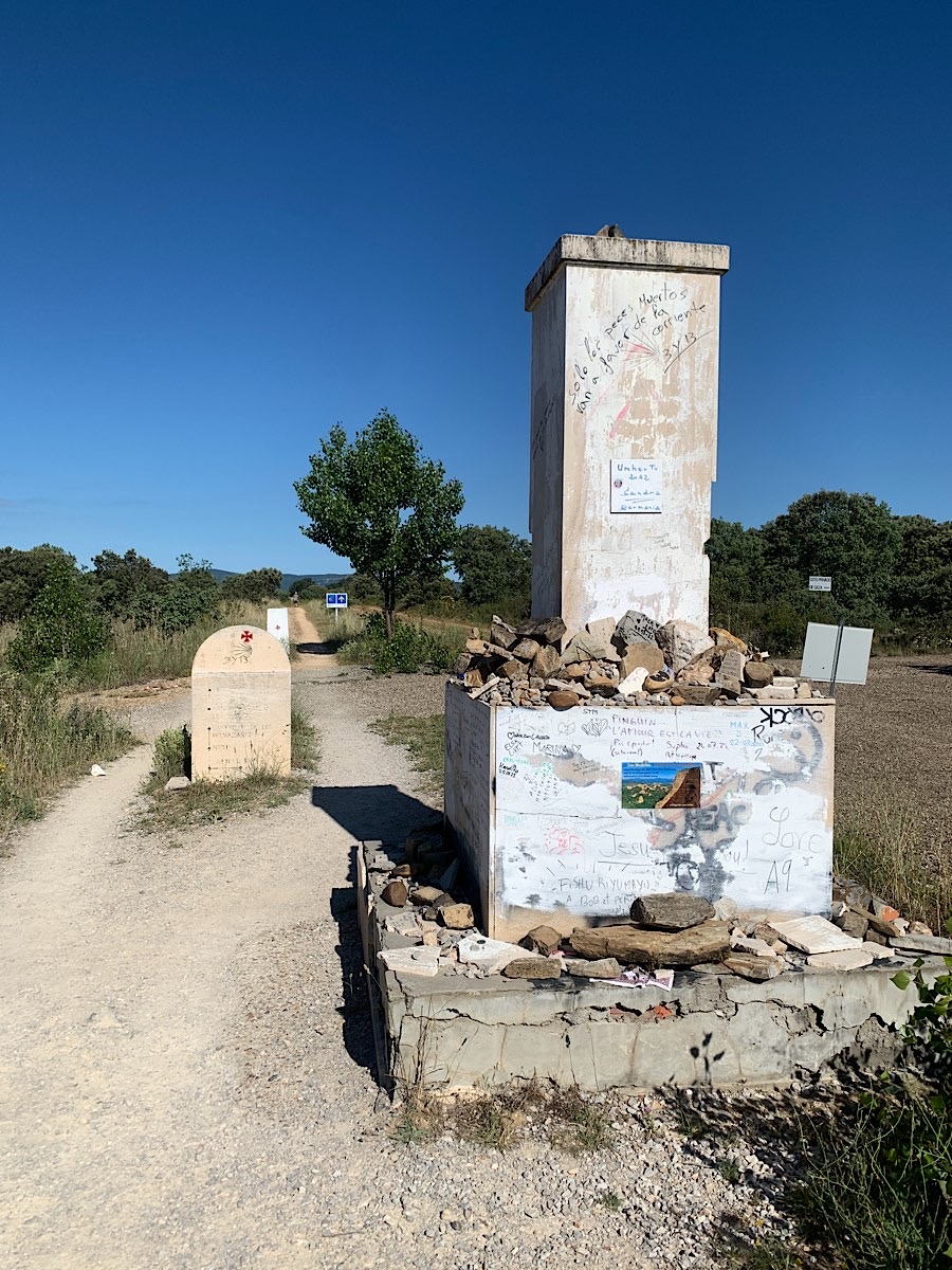 Die Landschaft ist jetzt gekennzeichnet von üppiger Vegetation, und in nicht zu großer Entfernung vor mir beginnt das hügelige Land. Auf einem dieser Anhöhen muß das Cruz de Ferro stehen, ein auf einem Baumstamm montiertes Eisenkreuz und eines der berühmtesten Wahrzeichen auf dem Jakobsweg, denn es markiert den höchsten Punkt auf dem Camino Francés. Ich werde morgen auf meinem Weg nach Ponferrada daran vorbei kommen.