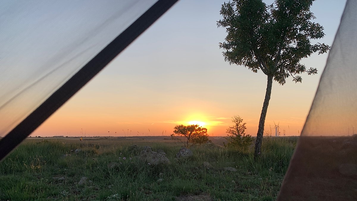 Ja, natürlich wäre es wesentlich entspannter gewesen in Hornillos del Camino zu bleiben und ein richtiges Bett zu haben, aber wenn man sich traut mit seinem Zelt so zu schlafen, wie ich es gerade tue, ist das schon eine tolle Erfahrung und ein Geschenk das so zu erleben.