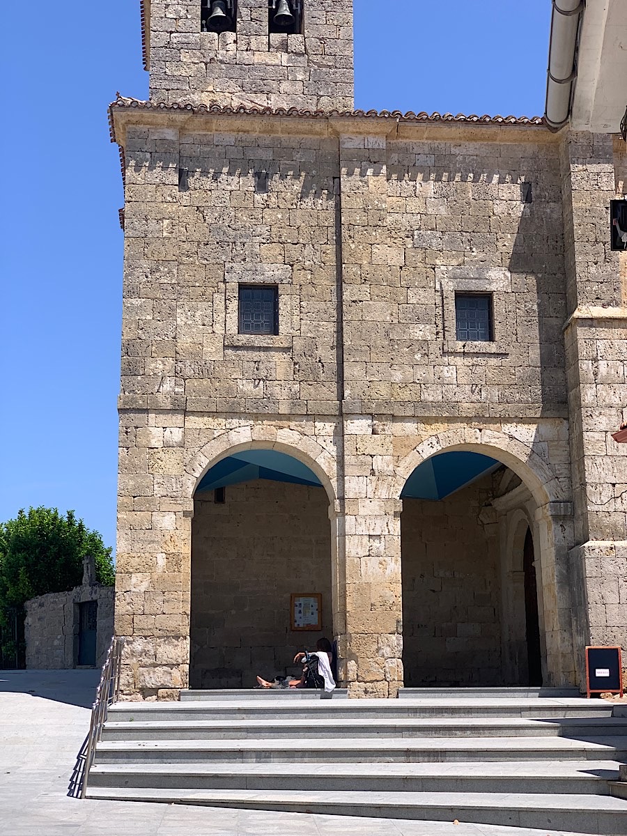 Um elf Uhr erreiche ich schon Hornillos del Camino. Mein Plan ist hier ein paar Stunden zu verweilen, um der Mittagshitze aus dem Weg zu gehen, und dann am späten Nachmittag noch mal zehn Kilometer weiter zu wandern. Und irgendwo da, wo ich dann raus komme, möchte ich mir einen schönen Platz zum schlafen suchen.