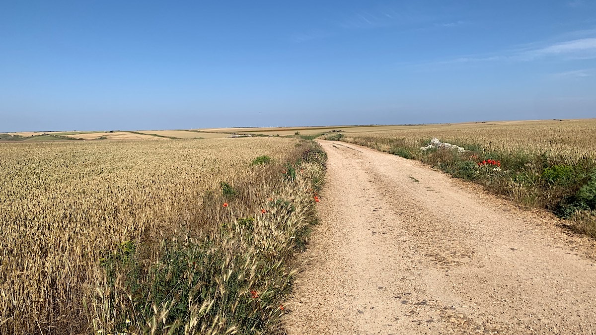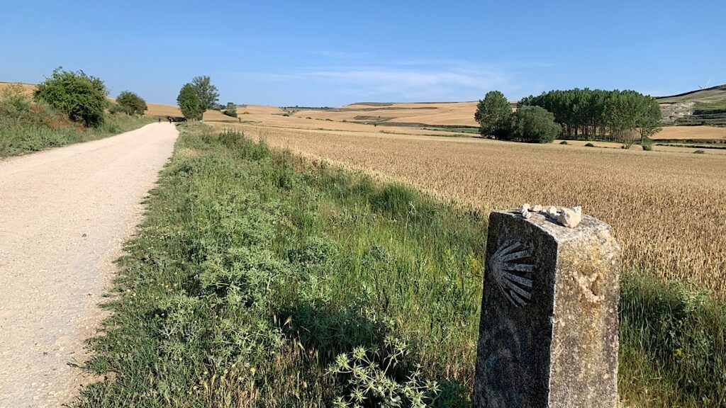 Ab Rabé de las Calzadas gibt es fast keinen Schatten. Vorsicht im Sommer in den Mittagsstunden. Von hier bis Hontanas gibt es kaum Trinkbrunnen, daher sollte man seine Trinkflasche füllen.