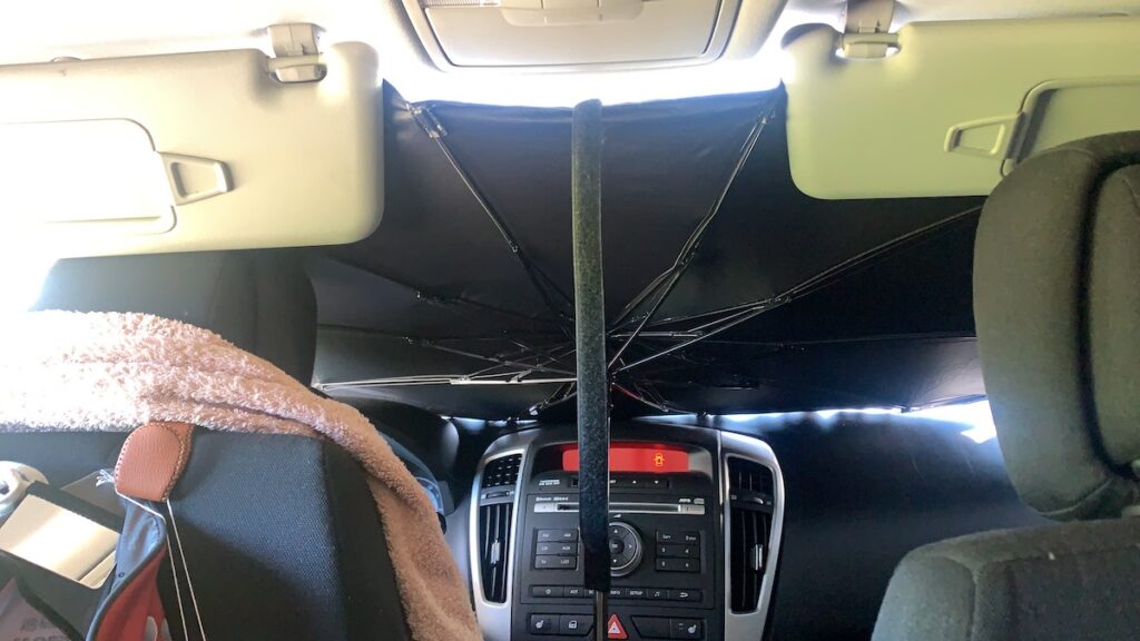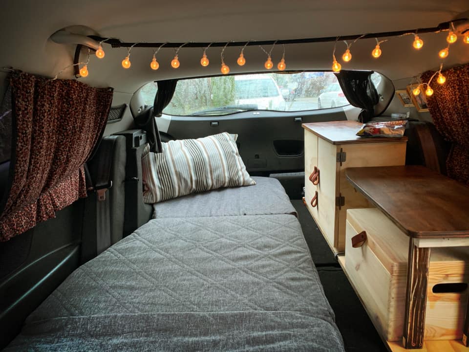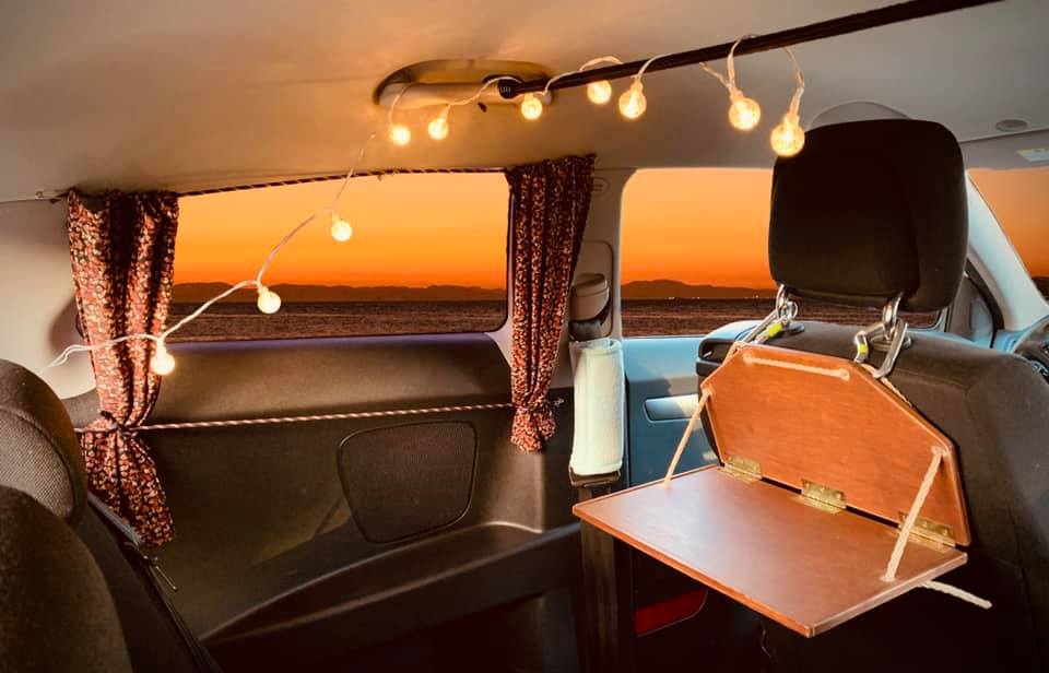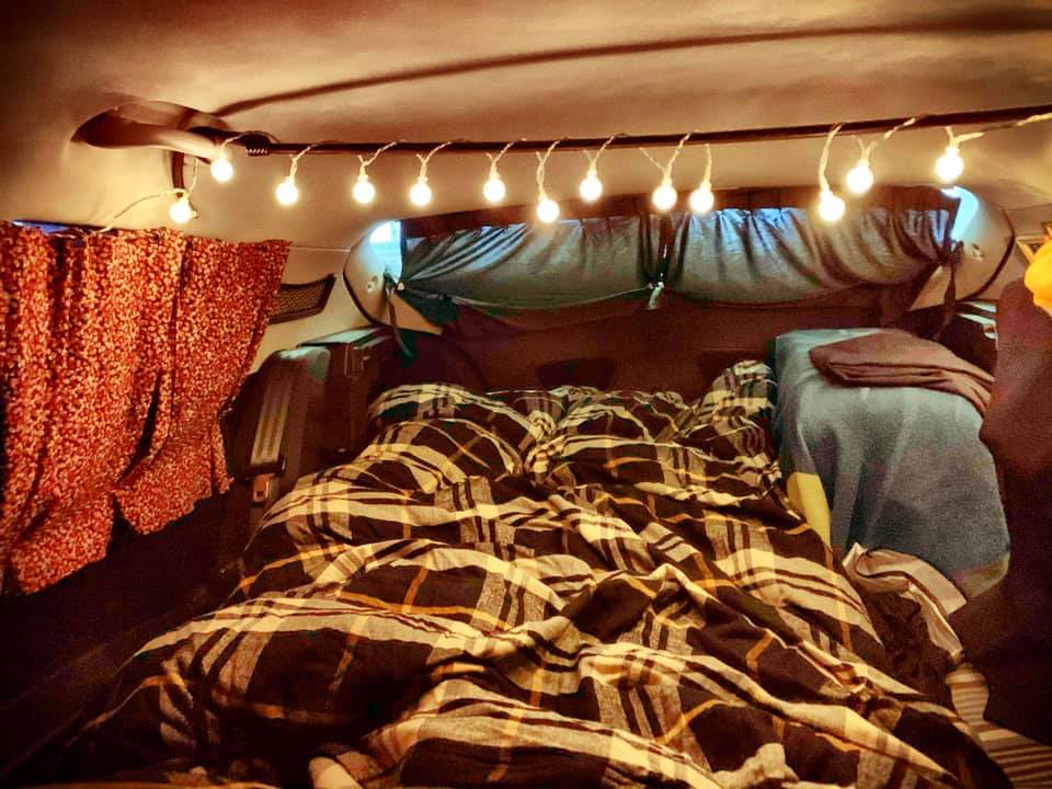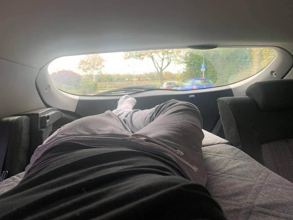 Das war meine letzte und beste Lösung, um im Auto eingermaßen schlafen zu können, bevor ich den Wagen letztendlich in einen richtigen Minicamper verwandelt habe.