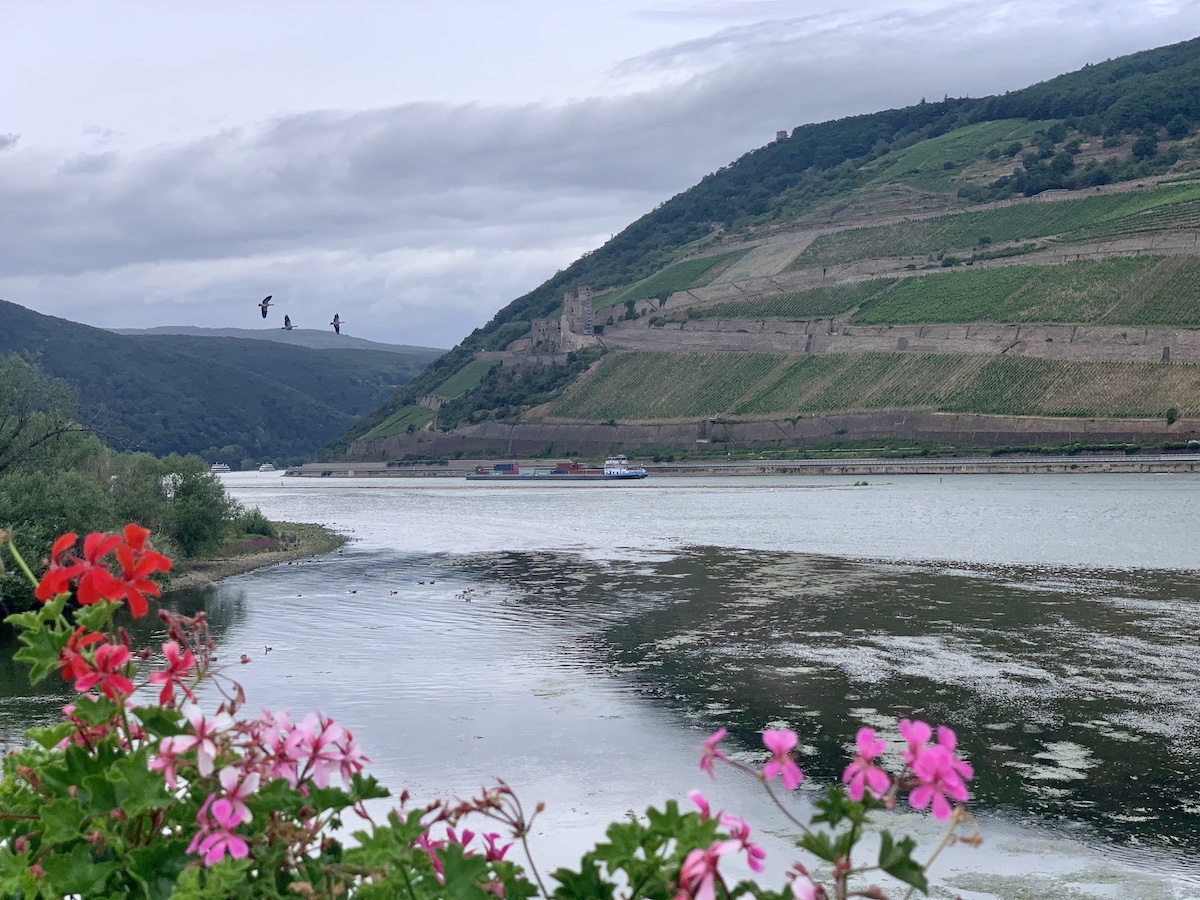It rained a bit towards the end but that didn’t spoil things. The Rhine widened considerably during this stage but narrowed again before entering the gorge. Bacharach and our hotel is stunning!!