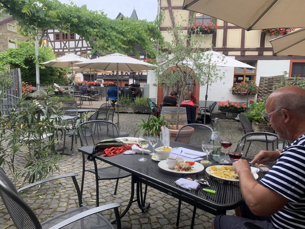 Have completed stage 6 of our bike tour and have arrived in Bacharach, a beautiful old town on the banks of the Rhine. We are surrounded by vineyards on the steep banks.