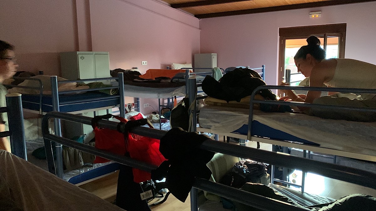 Nachts ist die Luft im Zimmer zum Schneiden dick. Ich stelle fest, daß die Spanierin-Frau die Jalousie vom einzigen Fenster im Raum an ihrem Bett komplett runter gelassen hat und somit überhaupt keine Luft mehr rein kommt, dabei war es den ganzen Tag schon stickig, trotz geöffneten Fensters. Ich mache die Tür zum Flur auf, um zumindest den Mief raus zu lassen.