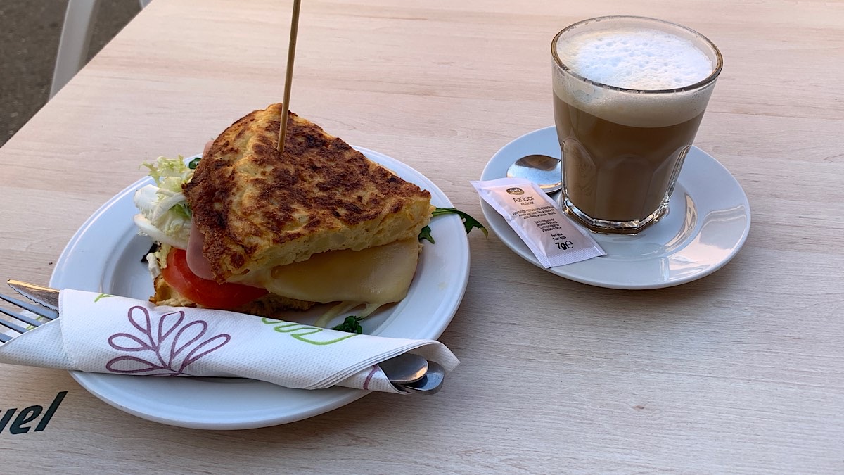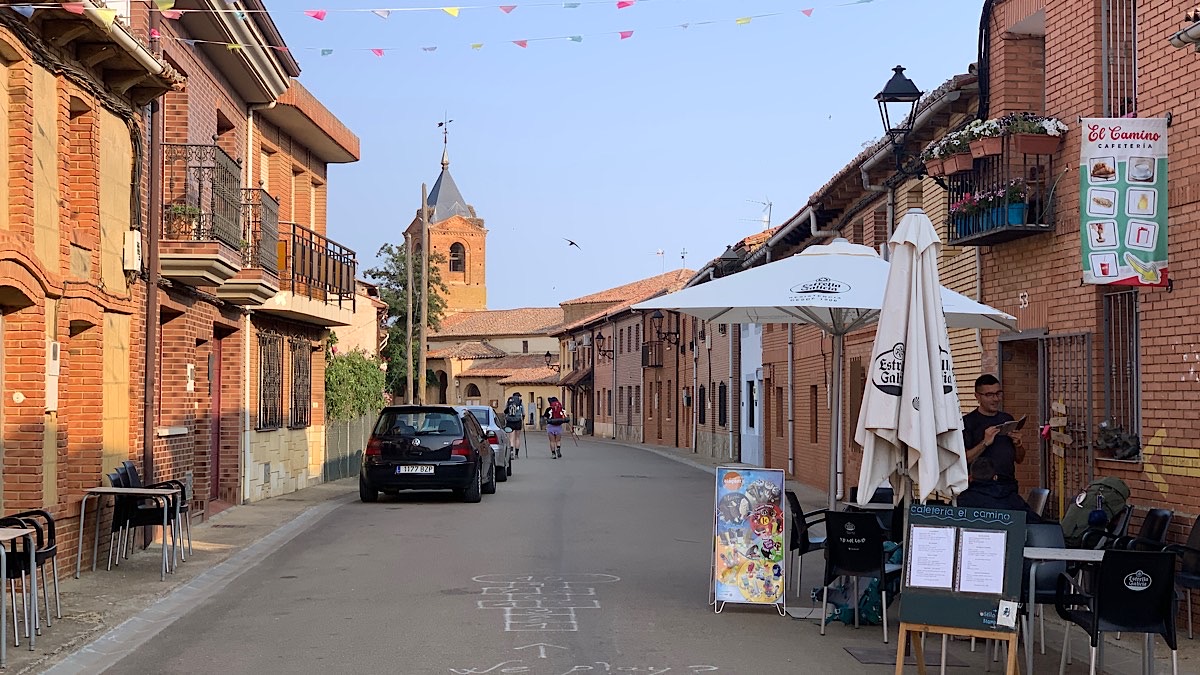 In einem Café in El Burgo Ranero gibt es nach acht Kilometern endlich meinen lang ersehnten Kaffee und noch dazu ein Tortilla Sandwich mit Käse, Schinken, Salat und Tomate. Genau das richtige jetzt. Und wer sitzt auch in diesem Café? Die schrullige Spanierin-Frau. Sie nickt mir beiläufig zu, ich nicke beiläufig zurück. Im Laufe des Tages begegne ich ihr immer wieder und hoffe, daß sie heute Nacht nicht in derselben Herberge wie ich sein wird, geschweige denn im selben Zimmer.