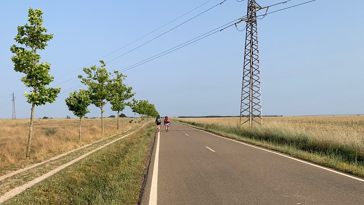 Erst um viertel vor sieben komme ich los. Heute ist wieder ein relativ langer Tag von siebenundzwanzig Kilometern angesagt, und er beginnt, was soll ich anderes sagen, ausschließlich geradeaus auf einem Pfad entlang einer Landstraße. Unter Karl III. von Spanien wird diese Straße zum Camino Real, dem Königlichen Weg, also zur Straße ersten Ranges. Weiter nördlich verläuft die Ursprungsroute, aber ich entscheide mich es dem Karl gleich zu tun und es royal zu halten.