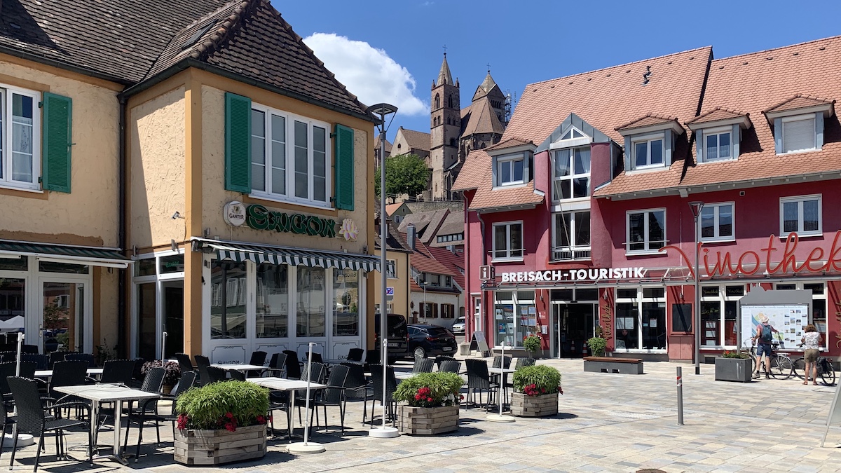 37.4 miles/65 odd km from the start we have checked in our hotel for the night in Breisach. Thank Gott we have left Weil am Rhein behind us….what a shithole!!!!!! Full of boy racers burning up the High Street in their Mercedes and BMWs wearing caps and testing one hand on top of the steering wheel. If that noise wasn’t enough the peace was shattered by screaming kids and very little alcohol in sight 🤣