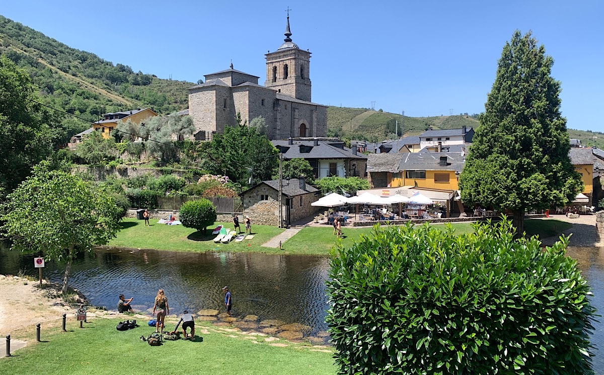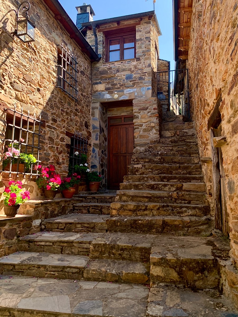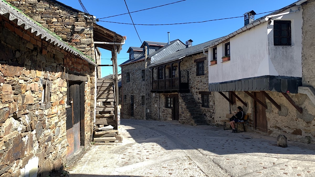 El Acebo ist ein wunderschönes Bergdorf, dessen Häuser zum größten Teil aus Schiefer gebaut sind. Deren Holzbalkone ragen teilweise bis über die Straße hinaus, mich erinnert das stark an den Wilden Westen. All diese Bergdörfer haben es mir angetan, ich möchte am liebsten in jedem einzelnen eine Nacht bleiben. Deshalb gruselt es mich ein bisschen vor Ponferrada, denn die Stadt hat 65.000 Einwohner und ist demnach alles andere als klein. Noch dazu kommt der Gedanke, daß es jetzt bald auf die 100-Kilometer-Marke zugeht. Nicht nur ist mein Abenteuer dann bald zu Ende, es wird auch kommerzieller und überlaufen von Kurzzeitpilgern mit etlichen Herbergen und Hotels entlang des Weges. Die letzten 100 Kilometer ab Sarria sind nämlich die Mindestlaufstrecke, um die Compostela in Santiago zu erhalten. Diese Möglichkeit wird selbstverständlich von vielen genutzt, denn mit An- und Abreise kann man das locker in einer Woche schaffen.