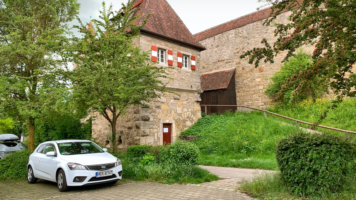 Ich stehe mit meinem Auto direkt an der Stadtmauer 😃