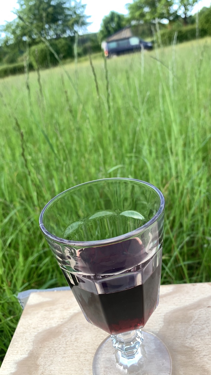 Abends stellte ich meine Allrounder-Holzbox auf die Wiese und briet meine letzten Eier, verputzte meine letzten Tomaten und das letzte Stück Gurke, und anschließend trank in noch den letzten Schluck Wein.