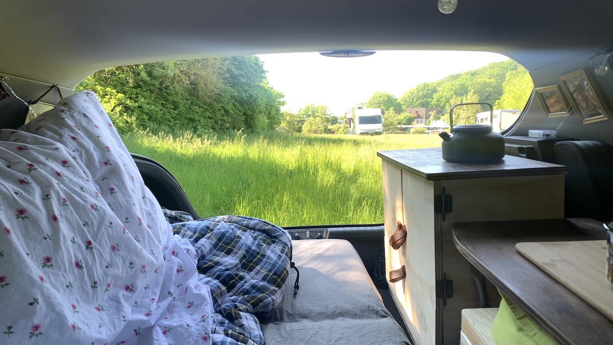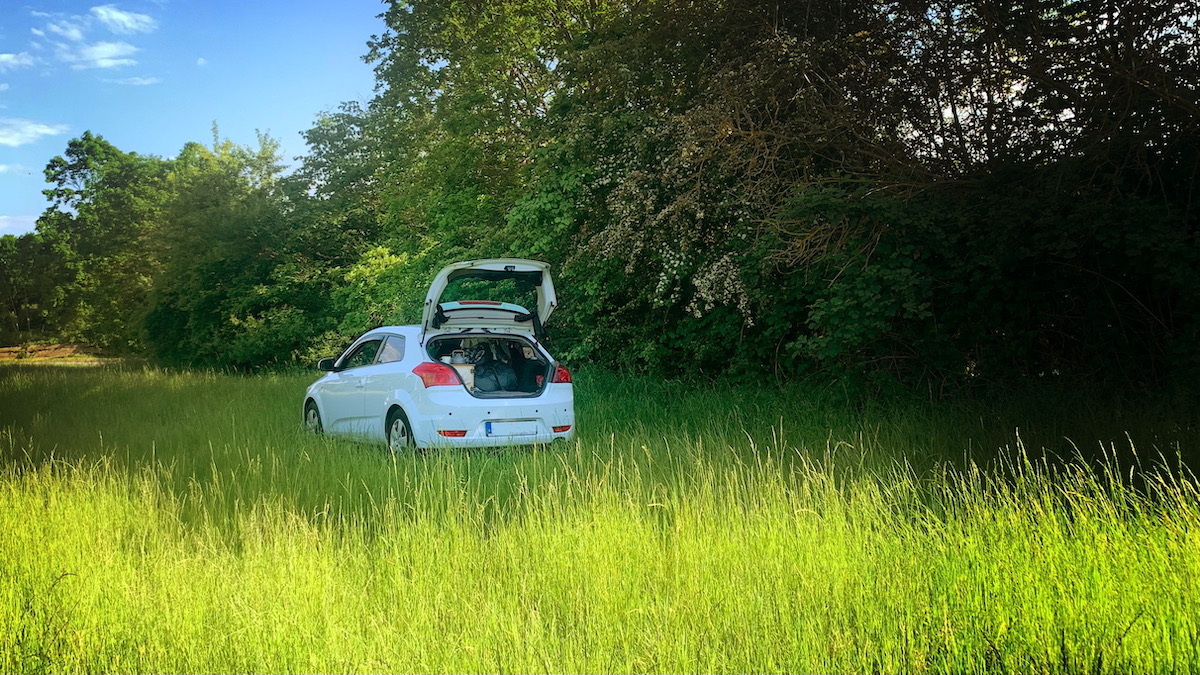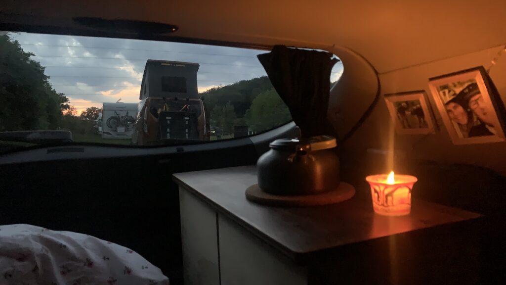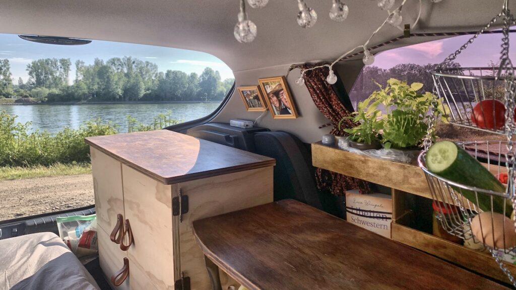 Morgenwäsche, Kaffee kochen und Sachen verstauen auf engstem Raum klappt mittlerweile immer besser, ich glaube, ich kenne jetzt wirklich jeden Winkel meines Autos im Schlaf und weiß wo was am besten hin passt. Mir grault es jetzt schon vor dem Ausräumen und Saubermachen morgen 😂😂.