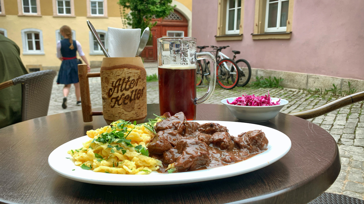 Sollte es trocken bleiben, werde ich heute im Restaurant Alter Keller zu Abend essen. (Gedankenstütze für mich: Hinter’m Storch links abbiegen ☝🏼!)