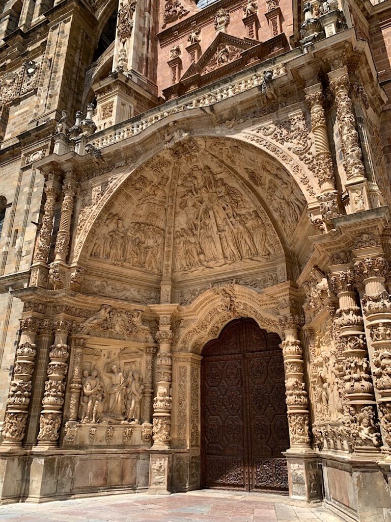 Ich habe großen Hunger und finde in schmerzfußläufiger Entfernung ein Restaurant, in dem ich einen gemischten Salat und frittierte Kartoffelscheiben mit einer scharfen Soße bekomme, dazu ein großes Bier. Es schmeckt sehr gut, und ich esse alles auf. Gut gestärkt möchte ich schließlich noch etwas durch die Gegend laufen, denn es gibt ja so viel zu sehen in Astorga. Neben Teilen der ursprünglichen römischen Stadtmauer und dem Plaza Mayor mit seinem barocken Rathaus gibt es zum Beispiel die Kathedrale Santa María, mit dessen Bau bereits im 15. Jahrhundert begonnen wurde und die gotische, Renaissance- und barocke Elemente vereint. Oder den Bischofspalast, Palacio Episcopal, der heute das »Museum der Wege« beherbergt und sich der Geschichte des Jakobswegs widmet. Wären da nicht diese unerbittlichen Schmerzen, und mit jedem Schritt sinkt meine Motivation mir überhaupt noch irgendetwas anzusehen. Ich möchte mal wissen, wie viele Pilger sich tatsächlich all die Sehenswürdigkeiten ansehen, geschweige denn alle Kathedralen besuchen. Und diejenigen die es tun, haben all diese Menschen keine Schmerzen? Bin ich die einzige, die sich am Ende des Tages fast nur auf allen Vieren fortbewegen kann? Dabei tun mir die Beine gar nicht weh, es sind wirklich nur die Fußsohlen, die sich anfühlen, als wären sie durchsäht von Glassplittern, die sich bei jedem Schritt tiefer in das rot geschwollene Fleisch einbohren. Mein Po-Muskel, der mich zu Beginn meiner Wanderschaft so geärgert hat, ist zum Glück kein Thema mehr.