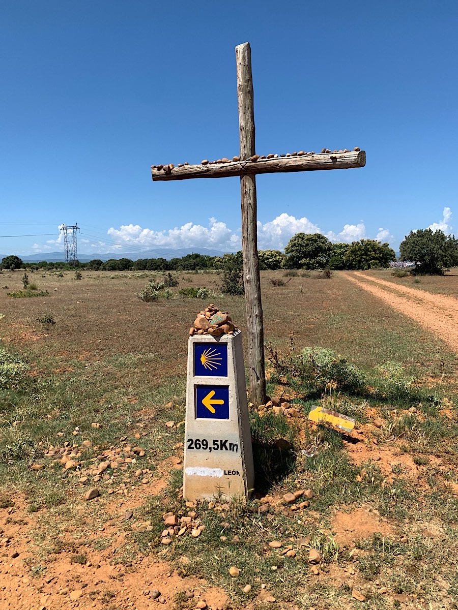 Kurz vor Astorga tun mir meine Füße so sehr weh, daß ich es fast nicht mehr aushalte. Obendrein ist es sehr heiß, eine regelrechte Tortour. Als sich die ersten Ausläufer der Stadt anbahnen, muß ich über eine Fußgängerbrücke um eine Hauptstraße zu überqueren. Diese Brücke führt auf langen Zickzack-Wegen nach oben und auf der anderen Seite in ebenso langem Zickzack wieder runter. Das sind gefühlt fünfhundert Meter Weg für zehn Meter Entfernung. Am anderen Ende angekommen muß ich mich hinsetzen, ich kann einfach nicht mehr auftreten. Zwei andere Pilger sitzen schon da auf einem Felsen, eine von ihnen hat beschlossen ihren Camino hier zu beenden und ist glücklich mit der Entscheidung. Ich wünsche ihr, daß es so bleibt und sie es nicht hinterher bereut. Ich muß sagen, trotz meiner höllischen Schmerzen bin ich so weit wie noch nie davon entfernt aufzugeben. Ich bin an einem Punkt angekommen, an dem ich mir nichts anderes mehr vorstellen kann als Santiago de Compostela zu erreichen und jeden Tag einfach drauf los zu laufen. Gelben Pfeilen zu folgen und sich um nichts anderes Gedanken machen zu müssen als darüber, wo ich eine Tasse Kaffee bekomme und wo ich die nächste Nacht schlafen werde, gehören mittlerweile zu meinem Alltag. Ich liebe es.