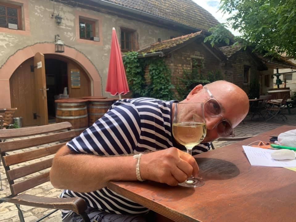 What a relaxing day that was…..alcohol with breakfast, alcohol with lunch and again alcohol with dinner tonight🤪 ……it was interspersed though with napping and a walk up through the local Riesling vineyards offering fabulous views down over Nierstein and the Rhein. I’ve just eaten a steak from the BBQ with homemade potato salad. It was ‘melt in your mouth’ time 😋 Steffi enjoyed her Bratwurst mit Noodle Salat und Zwick’l brown Biere 🙃😃