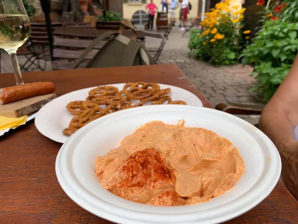 Spundekäse is a cheese spread or dip from the city of Mainz and the nearby Rheingau and Rheinhessen winegrowing regions. It is usually served with a glass of wine and pretzel crackers.