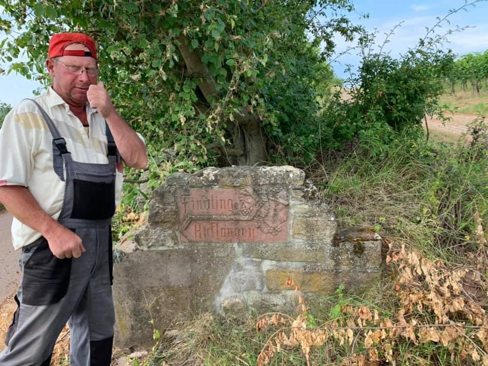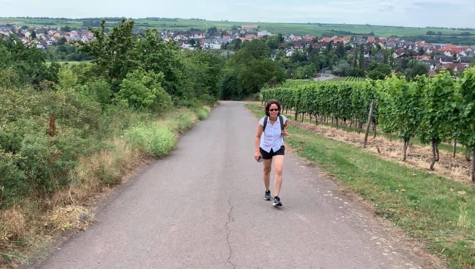Steffi taking a welcomed drink in the vineyard above Nierstein 🤣