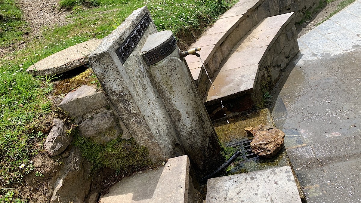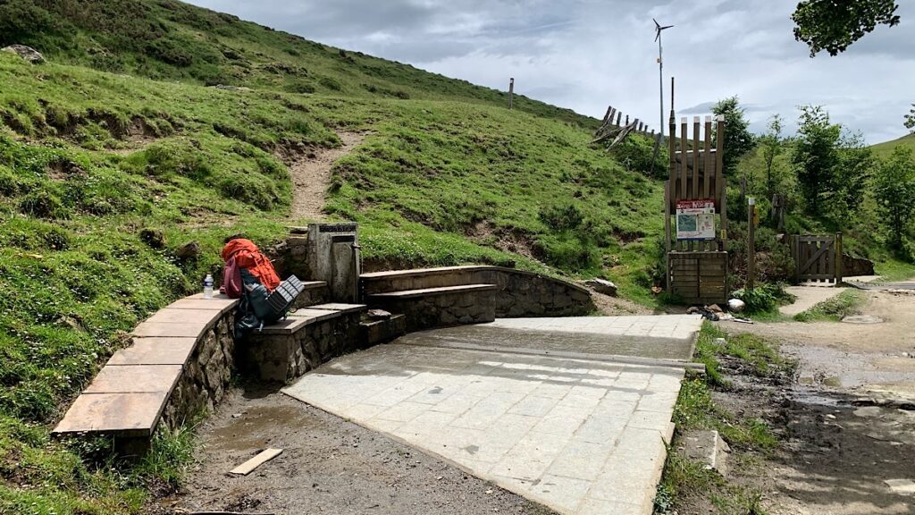 Die erste Wasserstelle kommt neun Kilometer und 550 Höhenmeter später. Es ist die berühmte Rolandsquelle. Hier soll Ritter Roland in der Schlacht von Roncesvalles im achten Jahrhundert sein Horn geblasen und Karl der Große aus der Quelle getrunken haben. Stattdessen sitze ich jetzt hier und esse meine Kartoffelchips. Auch ein bedeutender Moment, der zwar nicht in die Geschichte eingeht, für mich aber in jedem Fall bedeutender ist als Ritter Roland und sein Horn.