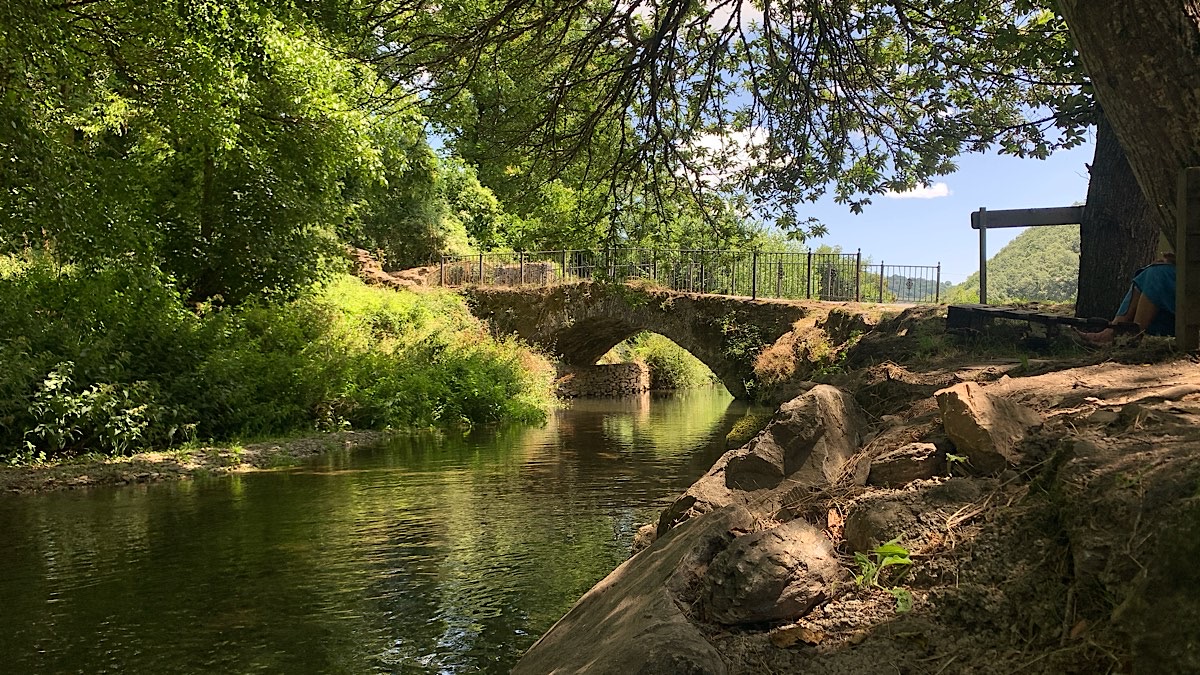In Las Herrerías setzen wir neben einer kleinen römischen Brücke am Flussufer unsere Rucksäcke ab und machen Rast. Ich ziehe meine Schuhe aus und bade meine Füße im eiskalten Wasser. Das Wasser ist so kalt, daß ich es nicht länger als ein paar Sekunden aushalte, es tut regelrecht weh. Und was macht Angela? Sie zieht sich ihren Badeanzug an und geht schwimmen. Diejenigen, die auch hier am Fluß ausruhen und wissen wie eiskalt dieses Wasser ist, starren ungläubig in ihre Richtung und können es ebensowenig fassen wie ich.