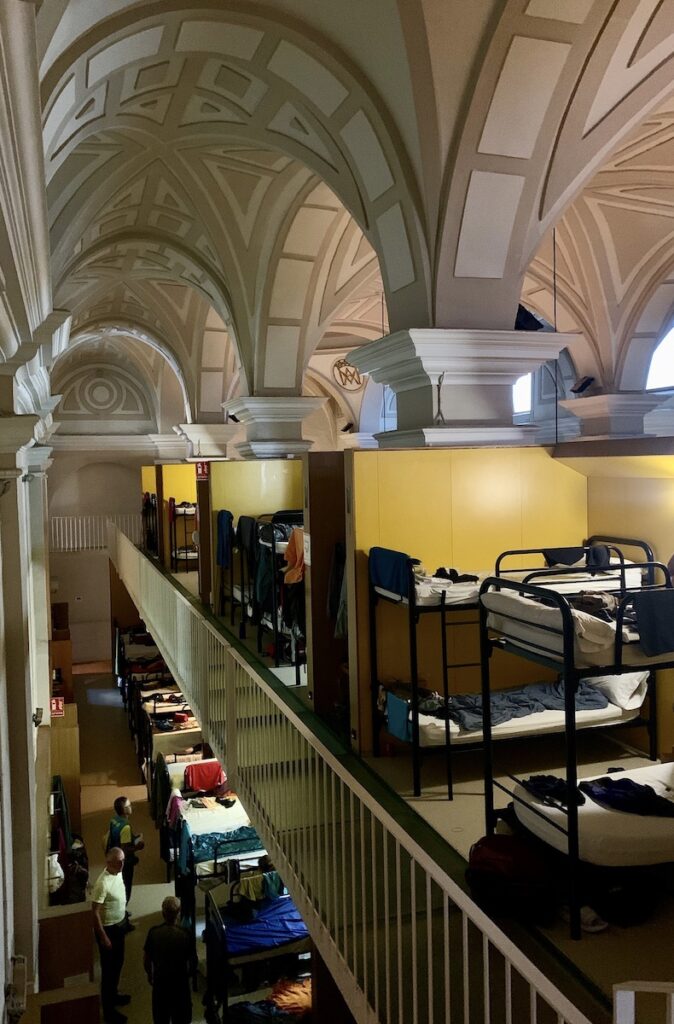 Das Glück ist auf meiner Seite – ich bekomme eins von nur noch fünf freien Betten bei Jesus und Maria! Ich darf auch zwei Nächte bleiben, muß allerdings morgen früh auschecken und kann dann um zwölf Uhr wiederkommen, wenn die Herberge wieder öffnet.