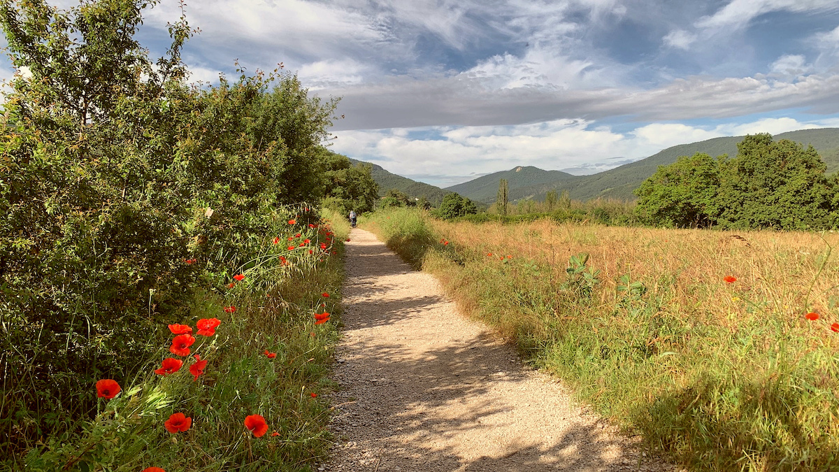 Mein oberer Po Muskel auf der rechten Seite tut mir seit heute Vormittag weh. Er sticht bei jedem Schritt und wird immer schlimmer. Das kommt bestimmt von dem ungewohnten Gewicht auf den Hüften vom Rucksack. Oder von einer unglücklichen Drehung vorgestern, als ich in den Pyrenäen ein Panoramabild gemacht habe, da hatte ich einen kurzen Schmerz, so als hätte ich mir was gezerrt. Zwischendurch muß ich mich jetzt immer wieder hin setzen, und manchmal glaube ich, ich kann nicht weiter laufen, so doll wird der Schmerz. In jedem Fall muß ich es bis zum nächsten Dorf schaffen, da kann ich mir zur Not ein Bett in einer Herberge nehmen.